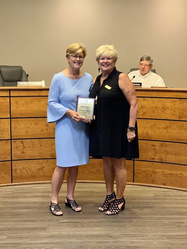 On Tuesday, September 21st, at the Putnam County School Board meeting, Tina Pinkoson, Director of Leadership Services for the Florida School Boards Association, recognized Holly Pickens for earning her Certified Board Member credentials.
